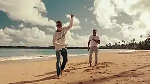 On April 12, 2021, Vives and Martin shared snippets of the accompanying music video and announced that it would be released the following day.[10][91] The visual was released alongside the song on the specified date. The video was filmed at different locations in Old San Juan, such as Piñones, El Escambrón, and El Batey, which fully represent Puerto Rico's aesthetics, culture, and history.[18][22] It was directed by Carlos Perez,[4] who had previously directed the videos for Martin's singles "Tal Vez",[92] "Jaleo",[93] "The Best Thing About Me Is You",[94] "Frío",[95] "Come with Me",[96] "Perdóname",[97] "Fiebre",[98] and his 2020 songs, "Falta Amor", "Tiburones (Remix)", and "Recuerdo".[99][100][101] Beach and palm tree scenes appear in the video to make the audience feel the rhythm of summer.[102][103] MTV News praised the "bright colors, contagious energy and positive vibes" that emerge from the video.[104] The music video was nominated for Best Pop Video at the 2021 Premios Quiero.[105] Vives and Martin gave their first live performance of "Canción Bonita" at the 2021 Latin American Music Awards on April 15, 2021.[15] As of March 2022, the video has received over 100 million views on YouTube.[106] For further promotion, Spotify promoted the song on billboards in Times Square.[107]