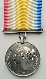 The medal, designed by William Wyon, was silver and 36 millimetres (1.4 in) in diameter, with the following design:[1]