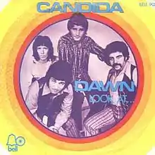 "Candida" was released as a single in July 1970 under the moniker Dawn, named after the daughter of either Jay Siegel[8] or Bell Records executive Steve Wax.[6][5] The single reached number one in Brazil,[13] Malaysia,[14] Singapore,[15] Spain,[16] and Sweden,[17] and the top ten in Austria,[18] Canada,[19] Denmark,[17] Mexico,[16] New Zealand,[15] Norway,[6] South Africa,[15] the UK,[20] and the USA.[21] It also reached the top twenty in Australia,[5] Belgium,[22] and Germany.[23] Billboard ranked the record as the No. 18 song of 1970.[24]