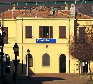 Candiolo railway station (Italian: Stazione di Candiolo) serves the town and comune of Candiolo, in the Piedmont region, northwestern Italy.[1] The station is a through station of the Turin-Pinerolo-Torre Pellice railway.