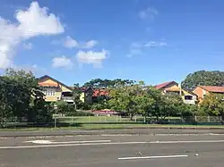 The growth of the suburb was stimulated by the establishment of the Swift Company, which built a large abattoir in 1913, described as one of the largest industrial operations undertaken in Queensland at the time.[8] With the influx of residents, created by employment in the flourishing meatworks business, the demand for a local school in Cannon Hill increased significantly. The lack of a local school meant many children had to travel several kilometres to Bulimba, Norman Park or Hemmant to attend primary school.[9][1]