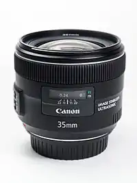 The Canon EF 35mm lenses are a family of wide angle prime lenses with EF mount made by Canon Inc. The family also includes one EF-S lens that only mounts on Canon bodies with APS-C sensors.