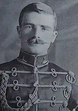 After the War ended, he remained in the Army, serving in India, Britain and Ireland. He was appointed Adjutant and Quarter-Master in the Army School of Education in India, returning to England in 1925,[3] rejoining his regiment on 14 October.[5] He was promoted to captain on 21 January 1928,[6] and on 9 December 1930 he reached the retirement age for service,[7] remaining in the reserve of officers for a further five years.[8] On leaving the Army he researched the other four Light Brigade regiments which had also taken part in the Charge of the Light Brigade.[4]