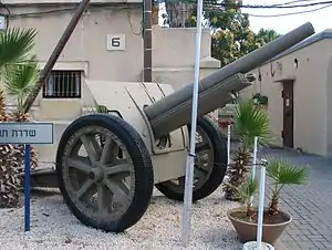 ![]() Canon de 105 mle 1913 with rubber tires, in Batey ha-Osef Museum, Tel Aviv, Israel. | |