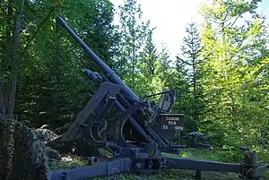 ![]() Canon anti-aérien de 75mm modèle 1938 at fort de Pré-Giroud. | |
