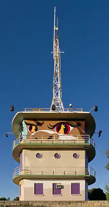 In early 1929 a signal station was constructed on the peak of Cantonment Hill to replace the station that had operated at Arthur Head.[11] The station opened on 8 May 1929 when at 7:40 am signalman Edward Ray raised the first ball for SS Gascoyne.[12] Ray retired in 1941 after 44 years service, 39 of them at Fremantle.[13] This station was replaced with a masonry building by the Harbour Trust in 1956 providing commanding views across to Rottnest Island.[14][15] The signal station closed in 1964 when it was replaced by the Port of Fremantle's new building on Victoria Quay.[1]