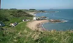 Canty Bay is a small inlet and coastal hamlet on the northern coast of East Lothian, Scotland.[1] It is 2 miles (3.2 km) east of North Berwick and is opposite the Bass Rock and Tantallon Castle. Other settlements nearby include Auldhame, Scoughall, Seacliff, and the Peffer Sands. Canty Bay means "bay of the little head" from the Gaelic ceanntan, diminutive of ceann.[2]