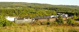 • On June 13, 2010, a westbound freight train derailed sixteen cars on the Hopewell Subdivision in Avondale Station. Six of the sixteen derailed cars were loaded with liquified petroleum gas (propane). No individuals were injured, however, several residences were forced to evacuate for multiple days while cleanup operations took place. The Transportation Safety Board of Canada is currently investigating. A CBNS official was quoted in local media as stating that a preliminary finding had determined that a defect in a non-CBNS freight car was thought to have caused the derailment.[9] A subsequent minor derailment in Stellarton the following week where two freight cars left the tracks during a yard switching operation created a minor media sensation.[10] The derailment coincided with a public debate in Nova Scotia about whether the provincial government would extend the five-year subsidy agreement that was tied to maintaining the Sydney Subdivision (eastern section of the railway) where traffic had declined below sustainable levels. A site visit to view track conditions on the Hopewell Subdivision in Pictou County by Nova Scotia's Minister of Transportation and Infrastructure Renewal Bill Estabrooks in September 2010 revealed several track defects. Estabrooks stated that such defects could cause the railroad to lose its operating licence from the provincial government; however, RailAmerica argued the defects were minor and the railroad was safe.[11]