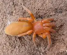 The Caponioidea or caponioids are a group of haplogyne araneomorph spiders that have been treated as superfamily with two members, the families Caponiidae and Tetrablemmidae.[1] Phylogenetic studies from 1991 onwards have shown that the group is not monophyletic, being composed of two basal members of a larger clade.[2][3] The precise members of that clade differ from study to study; one hypothesis is shown below.[3]