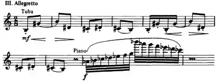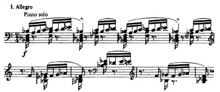 The Capriccio for Piano Left-Hand and Chamber Ensemble (sometimes titled Defiance, in Czech: Vzdor) is a composition by the Czech composer Leoš Janáček. The work was written in the autumn of 1926 and is remarkable not just in the context of Janáček's output, but it also occupies an exceptional position in the literature written for piano played only by the left hand.[1] The piece is scored for piano, flute, two trumpets, three trombones and tenor tuba.