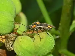 The adult bugs can be found from May to August.[3] They are often found on common cow-wheat (Melampyrum pratense). They feed mostly on members of the Faboideae (Papilionaceae), notably clover (Trifolium), vetches (Vicia), Cytisus scoparius,[6] Sarothamnus scoparius[7] and deervetches (Lotusspecies).[8] A recorded host plant is also Quercus pedonculata (Fagaceae).[7] These bugs are also predators, mainly on aphids and small fles. The eggs overwinter.[3]