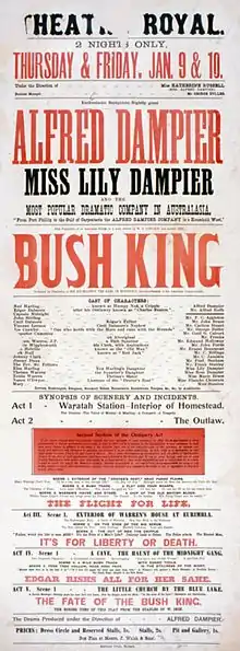 - ↑ "Criterion Theatre – The Bush King". The Sydney Morning Herald. 16 October 1905. Retrieved 26 November 2011.
