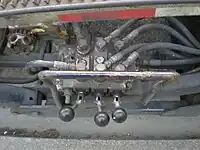 Trailer hydraulics are operated using a control box mounted on the trailer itself.