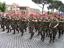 Carabinieri who are part of the Carabinieri Heliborne Squadron "Cacciatori di Calabria" wear the red beret.