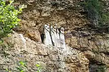 The Sarcophagi of Carajía (Spanish: Sarcófagos de Carajía, or Karajía) are unusually large pre-Inca Chachapoyas culture sarcophagi at the archaeological site of Carajía in the Utcubamba Valley, located 48 km northwest of the city of Chachapoyas, Peru in Luya Province, Amazonas Region. The site contains eight Chachapoyan mummies located on a cliffside, referred to by local residents as the “ancient wise men”.[2]