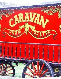 ![]() Display caravan with Caravan Farm Theatre logo | |