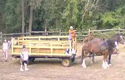 ![]() Clydesdales and wagon on the theatre's "stage" | |