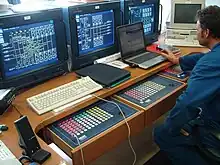 The cargo control room, CCR, or cargo office of a tankship is where the person in charge (PIC) can monitor and control the loading and unloading of the ship's liquid cargo. Prevalent on automated vessels, the CCR may be in its own room, or located on the ship's bridge.[1][2] Among other things, the equipment in the CCR may allow the person in charge to control cargo and stripping pumps, control and monitor valve positions, and monitor cargo tank liquid levels.