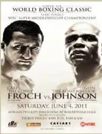 Carl Froch vs. Glen Johnson was a championship fight for the WBC Super Middleweight championship.[1] The winner of the bout went on to the Finals of the Super Six World Boxing Classic and face WBA Champion Andre Ward, after his decision win over Arthur Abraham in May 2011. It was held on June 4, 2011, at Boardwalk Hall, in Atlantic City, New Jersey, United States, and televised on Showtime.[2]