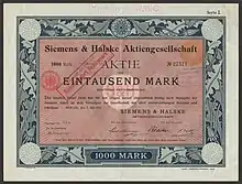 Share of the Siemens & Halske AG, signed by Carl Heinrich von Siemens as senior chief executive.