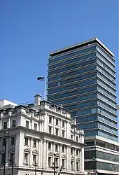 During the Second World War the hotel was badly damaged by German bombing in 1940. The residential parts of the building were permanently closed.[10] In 1942 remaining parts of the building were requisitioned as offices by the British government, although the American Bar and grill room of the hotel remained open.[11] The hotel never reopened. In 1949 the company sold the unexpired portion of its lease to the government of New Zealand for £325,000; the site was proposed for the new High Commission of New Zealand.[12] In 1951 The Carlton Hotel Limited went into voluntary liquidation.[13] The hotel was demolished in 1957–58, and the High Commission was built on the site.[1]