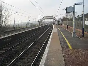 Carluke railway station is a railway station on the West Coast Main Line (WCML) that serves the town of Carluke, South Lanarkshire, Scotland. The station is managed by ScotRail and is predominantly served by Argyle Line commuter trains running between Lanark and Glasgow Central. The station lies at the western edge of the town, and enjoys panoramic views of the Clyde Valley and beyond to the hills of Lanarkshire and Ayrshire.