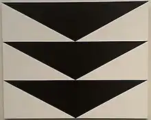 From September 6, 2016, to January 9, 2017, Herrera's works were displayed in Carmen Herrera: Lines of Sight at the Whitney Museum of American Art, which was her first museum exhibition in almost two decades.[28] With over fifty works shown, the show focused on pieces created from 1948 to 1978 and included paintings, works on paper, and three-dimensional projects. Dana Miller, a curator at the Whitney, organized the showing in chronological order, with three separate sections dedicated to important time periods in Herrera's work. The first section focused on works created from 1948 to 1958, during which time Herrera experimented with many types of abstraction. The second section focused on works from 1959 to 1971 and is a collection of paintings entitled Blanco y Verde, which Herrera considered the most important work of her career. The last section consisted of works from the 1960s and 1970s and contained more experimental pieces, as well as four wooden sculptural works. These pieces show Herrera's experimentation with figure/ground relationships and exhibit clear influence from Herrera's background in architecture. Many of these works had never been displayed to the public before. Miller said in regards to the design of the exhibition: "With material this strong, the curatorial imperative is really to step back and let the work shine".[29] This exhibition was shown at the Wexner Center for the Arts, from February 4, 2017, to April 16, 2017.[30]