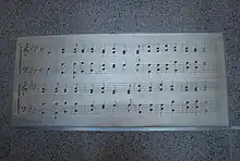Small selections of the lyrics, arranged at random, are found on campus in the Ohio Union building.