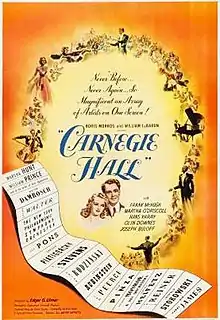 Carnegie Hall is a 1947 American musical drama film directed by Edgar G. Ulmer and starring Marsha Hunt and William Prince.[2] The film was produced by Federal Films and released by United Artists.