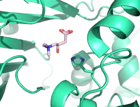 As may be expected from members of the same enzymatic family, there is strong similarity between the structures of carnitine acetyltransferase (CRAT) and CROT, as these enzymes have 36% sequence homology.[3] A key difference between these enzymes that may explain their selectivities between short and medium-chain acyl-CoAs hinges on a glycine residue which is present in the acyl binding site in CROT, Gly-553. In CRAT, however, the residue in the same position in the acyl binding site is a methionine residue, Met-564.[3] These residues has been shown to serve as a substrate “gatekeeper” in both CRAT and CROT. M564G CRAT mutants have been shown to accept a wider variety of acyl-CoA substrates.[4] Similarly, G553M CROT mutants show marked inactivity with octanoyl-CoA, while maintaining activity with short-chain acyl-CoAs.[3]