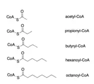 While CROT's canonical substrate is octanoyl-CoA, CROT is also known to be able to catalyze the deacylation of numerous acyl-CoAs, such as acetyl-CoA, propionyl-CoA, butyryl-CoA, and hexanoyl-CoA.[5] CROT can also take branched-chain fatty acyl-CoAs as substrates, such as 4,8-dimethylnonanoyl-CoA, which is derived from the metabolism of pristanic acid in the peroxisome.[9]