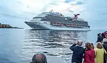 On June 21, 2019, it was announced by Carnival Cruise Line that three scheduled cruises would be cancelled due to performance issues with the ship's propulsion system.[11] The heavy-lift ship BOKA Vanguard was used as a floating dry dock for repairs to the azipod propulsion system.[12][13][14] This operation was selected over Grand Bahama Shipyard's drydocks after one of the shipyards cranes collapsed on Royal Caribbean's Oasis of the Seas.[15]
