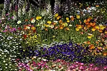 In a public meeting in the Toowoomba town hall in September 1949, a decision was made to revive the garden competitions and festivals that had ceased during World War II.[1] The first Carnival of Flowers was held in October 1950 and was a resounding success, with more than 50,000 people lining the main street to watch the opening parade. This heralded eight days of festivities focused on Toowoomba's beautiful gardens, both public and private. Money raised from the carnival went to local charities. The following year, the date of the carnival was moved to September, to coincide with the school holidays.[2][3] Since then, the carnival has continued every year and is visited by thousands of people from around the state and the country. It is Queensland's longest running annual festival.[4][5]