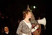 Tohá holding a bullhorn while celebrating after being elected mayor of Santiago, 2012.