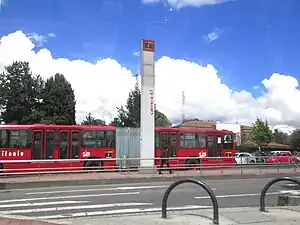 The simple station Carrera 47 is part of the TransMilenio mass-transit system of Bogotá, Colombia, opened in the year 2000.