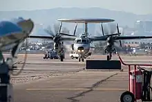The United States Navy's Carrier Airborne Early Warning Weapons School, more popularly known as CAEWWS (historically known as TOPDOME), is an American military unit that develops and teaches E-2D and E-2C Hawkeye tactics, techniques, and procedures (TTP) to selected Naval Aviators and Naval Flight Officers. CAEWWS originated in the early 1980s as the tactics department of VAW-110 on Naval Air Station Miramar, California, but later commissioned on 13 July 1988 as an independent command.[1][2][3] Today CAEWWS is incorporated into the Naval Aviation Warfighting Development Center (NAWDC) as the command and control (C2) weapons school along with the Navy Strike Fighter Weapons School (TOPGUN), Airborne Electromagnetic Attack Weapons School (HAVOC), Navy Rotary Wing Weapons School (SEAWOLF), Maritime Intelligence Surveillance Reconnaissance Weapons School (MISR), and STRIKE (historically known as Strike University).[4]