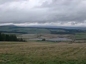 Carsbreck railway station[2] was a private station opened on the Scottish Central Railway near Carsebreck Loch, the Royal Caledonian Curling pond, between Stirling and Perth for the use of the curlers belonging to the Royal Caledonian Curling Club. It was first named by the Scottish Central Railway as 'Royal Curling Club Station,[3] a host of later names being Caledonian Curling Society's Platform,[4] Curling Pond Halt,[5] Royal Curling Club Platform,[6] Royal Curling Club Station, Netherton Halt and finally as Carsbreck Station.[7] It is unclear how many of these were official names. The site lay in the parish of Ardoch, Perth and Kinross with the villages of Braco, Greenloaning and Blackford nearby. The Scottish Central Railway line had been opened in 1848.