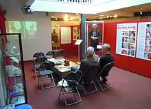 The Cartoon Museum hosted many exhibitions of cartoon art, including in 2014 a 30th-anniversary celebration of the TV satire Spitting Image.[7] The museum attracted 26,000 visitors a year[8] but closed its doors at Little Russell Street in late 2018, forced out by a substantial rent increase.[8]