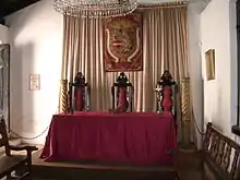 A bed which belonged to Fernando de la Mora is placed here and his portrait can be seen on the wall. Below the picture, there is an embroidered shirt worn by him. A large chest used by Juan Bautista Rivarola, a peculiar toilet, a magnificent prie-dieu and a polychrome niche complete the atmosphere of the room.
