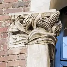 In all the symbolic elements of Casa Terradas we find other representations, both in sculptures, forge or glass work, which can conduct a symbolic reading, whether it is religious or mythological. Throughout the various façades comprising the house, male figures are represented, some with horns; others, with a more particular physiognomy, and sailor's knots. Vegetables are the most recurrent elements: fruits, like apples or pomegranates, as well as daisies, roses or clovers.