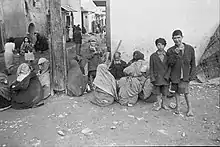 In 1941, with 40,000 inhabitants, the Mellah of Casablanca was the most populated in Morocco.[3] Poverty was deep;[4] families lived huddled together in a single room, with children in rags and often without shoes. Chronic malnutrition and epidemics were rampant especially among children who suffered from ringworm, trachoma and tuberculosis due to crowded living conditions.[5] The French authorities under the Vichy rule were not inclined to finance a partial transfer of this Jewish population to salubrious dwellings in the European neighborhood. Even after the war, they focused primarily on the construction of cheap housing in the European city with the aim of accommodating Moroccan workers from the countryside,[6][7] whom the city badly needed for its development. As for Jewish organizations, until 1945, they concentrated their efforts on Holocaust survivors.[8] It was only in the late 1940s that they started addressing the issue. From 1940 to 1960 internal immigration to Morocco occurred. The Jewish population in the countryside moved to large cities, mainly Casablanca, thus contributing to an increase in the urban population.[9][10] In 1960, the census of the Jewish population in Morocco was as follows:[11]