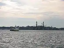 During the 1980s and 1990s, Bath Iron Works operated a dry dock in Portland Harbor to repair U.S. Navy vessels.