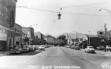 By 1903 the town's population had reached over 200. Citing confusion of this town with another in northern Okanogan County (that no longer exists), that same year, Mission and the entire valley were renamed for Kashmir, as local judge James H. Chase claimed it resembled the foothills of that region.[12][13] The spelling was changed to a more Americanized "Cashmere".[14] Cashmere was incorporated in 1904 and continued to prosper with the opening of the Mission Canal later that year which turned hundreds of acres of dry-unusable land into fertile farm land. Seattle investors purchased large tracts of land in and around Cashmere and constructed the town's first hotel and saloon in 1905.[15] A library was established in 1908 by the town's Woman's club. By 1909, Cashmere housed three banks. Telephone service was installed in 1909 followed by paved sidewalks in 1913, electric lights in 1914 and paved streets in 1919.[16]