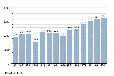- ↑ "Popolazione Residente al 1° Gennaio 2018". Italian National Institute of Statistics. Retrieved 16 March 2019.