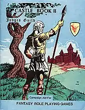 Following the release of Castle Book I in 1978, Judges Guild followed up in 1979 with Castle Book II, a 64-page softcover book written by Bob Bledsaw.[1] The book was published in several editions from 1979 to 1981; early editions have a black & white cover, later editions a full-color cover.