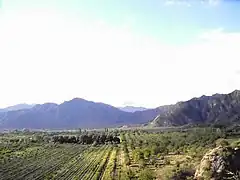 The province is located with the semi–arid region of Argentina.[4] Mean annual precipitation of the province is around 400 to 500 mm (16 to 20 in) which decreases significantly to the west.[5] The province is characterized by the presence of different microclimates based on variations in altitude.[5] In general, there are three different climatic zones found within the province.[4]