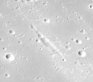 Catena Yuri lies to the south of Rima Zahia and east of Dorsum Thera.