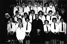 The first of the Catholic youth sports associations were established in Algiers in 1913,[4] namely: St. Croix (which was already involved with working class youth), St. Joseph Hussein Dey, and l’Avenir d’El Biar. They were created through an initiative of the Salesians of Don Bosco and the Congregation of the Sacred Heart of Jesus and catered predominantly to young people of European origin. They immediately became affiliated with the Fédération gymnastique et sportive des patronages de France (FGSPF), and their focus, as with the associations in France, was the provision of moral instruction and military training.[5] They were organised into regional unions in which both religious and secular people, including women, shared responsibilities.[N 1] The first such union was established in Oran in November 1913 by a Father Koëger.[6]