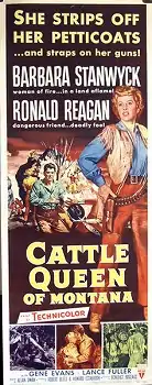 Cattle Queen of Montana is a 1954 American Western film shot in Technicolor directed by Allan Dwan and starring Barbara Stanwyck and Ronald Reagan. The supporting cast includes Gene Evans, Lance Fuller, Jack Elam, Chubby Johnson, and Morris Ankrum.