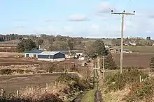From there the alignment crosses the Burn of Pheppie in an agricultural area and then crosses a bridge over the Burn of Elsick at Gillybrands, slightly southeast of Elsick House. After crossing through the boggy Portlethen Moss (which historically had a much larger extent than at present), the route passes west of a massive Megalithic standing stone.